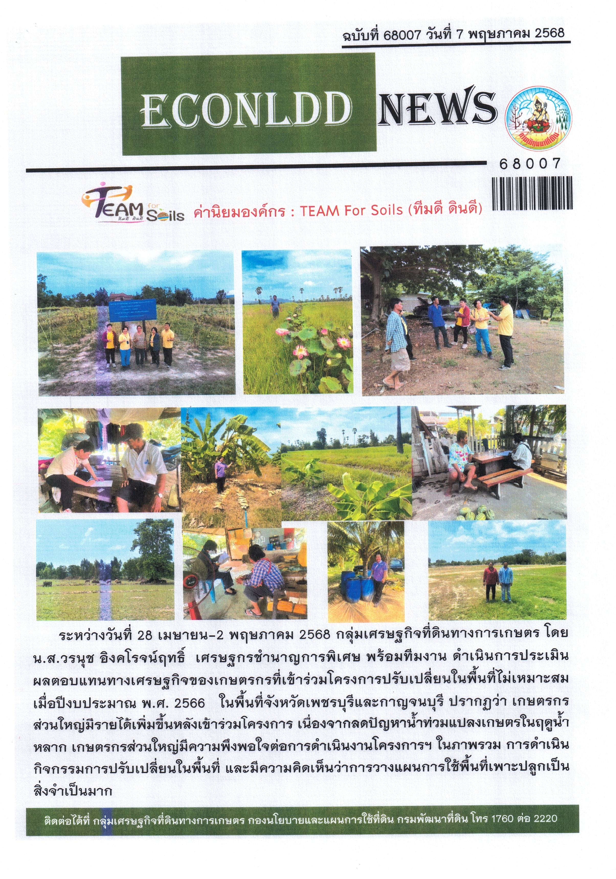 กลุ่มเศรษฐกิจที่ดินทางการเกษตร โดย น.ส.วรนุช อิงคโรจน์ฤทธิ์ เศรษฐกรชำนาญการพิเศษ พร้อมทีมงาน ดำเนินการประเมินผลตอบแทนทางเศรษฐกิจของเกษตรกรที่เข้าร่วมโครงการปรับเปลี่ยนในพื้นที่ไม่เหมาะสม ระหว่างวันที่ 28 เมษายน - 2 พฤษภาคม...
