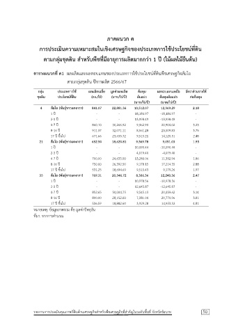 กลุ่ม ประเภทการใช้ ผลผลิตเฉลี่ย มูลค่าผลผลิต ต้นทุน ผลตอบแทนเหนือ อัตราส่วนรายได้