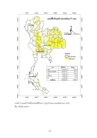 ภาพที่ 19 แผนที่การใชDประโยชน1ที่ดินในการปลูกขDาวของประเทศไทย พ.ศ. 2564 ที่มา: ทีมวิจัย (2565) 105