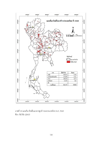 ภาพที่ 20 แผนที่เผาไหมDในแปลงปลูกขDาวของประเทศไทย พ.ศ. 2564 ที่มา: ทีมวิจัย (2565) 106