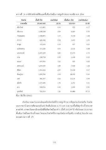 ตารางที่ 16 การใชDประโยชน1ที่ดินและพื้นที่เผาไหมDในการปลูกขDาวของภาคเหนือ พ.ศ. 2564