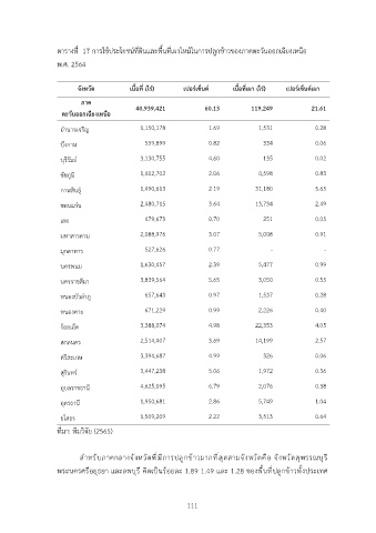 ตารางที่ 17 การใชDประโยชน1ที่ดินและพื้นที่เผาไหมDในการปลูกขDาวของภาคตะวันออกเฉียงเหนือ