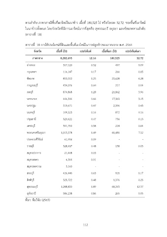 ตารางที่ 18 การใชDประโยชน1ที่ดินและพื้นที่เผาไหมDในการปลูกขDาวของภาคกลาง พ.ศ. 2564