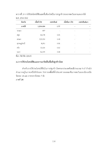 ตารางที่ 19 การใชDประโยชน1ที่ดินและพื้นที่เผาไหมDในการปลูกขDาวของภาคตะวันออกและภาคใตD