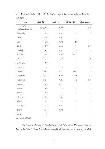 ตารางที่ 21 การใชDประโยชน1ที่ดินและพื้นที่เผาไหมDในการปลูกขDาวโพดของภาคตะวันออกเฉียงเหนือ