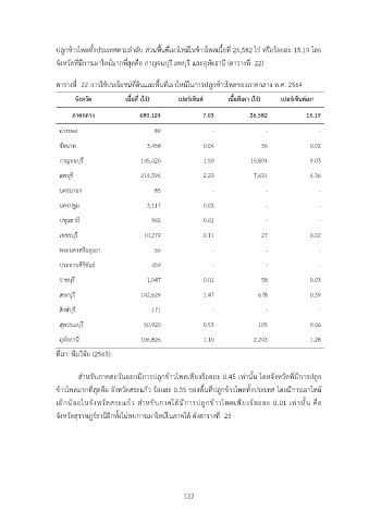 ตารางที่ 22 การใชDประโยชน1ที่ดินและพื้นที่เผาไหมDในการปลูกขDาวโพดของภาคกลาง พ.ศ. 2564