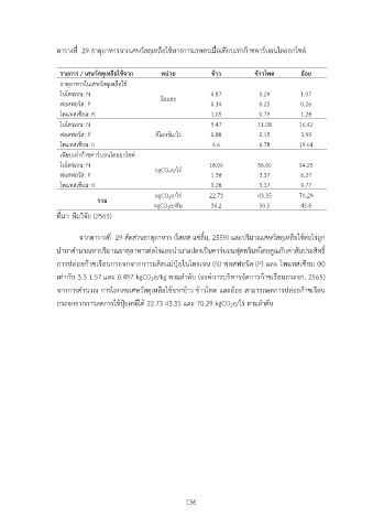 ตารางที่ 29 ธาตุอาหารจากเศษวัสดุเหลือใชDทางการเกษตรเมื่อเทียบเทIาก าซคาร1บอนไดออกไซด1