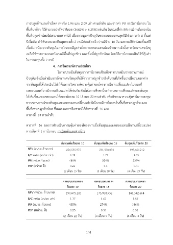 ตารางที่ 36 ผลการประเมินความคุDมคIาของโครงการเมื่อตDนทุนและผลตอบแทนมีการเปลี่ยนแปลง