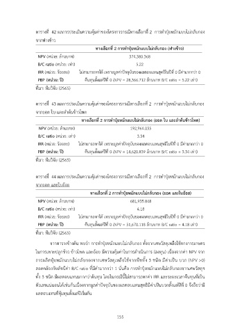 ตารางที่ 43 ผลการประเมินความคุDมคIาของโครงการกรณีทางเลือกที่ 2 การทำปุยหมักแบบไมIกลับกอง