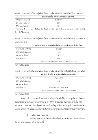 ตารางที่ 54 ผลการประเมินความคุDมคIาของโครงการกรณีทางเลือกที่ 3 การผลิตไฟฟาชีวมวล จากยอด ใบ