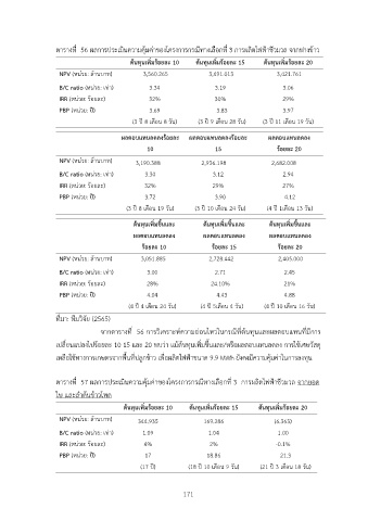 ตารางที่ 57 ผลการประเมินความคุDมคIาของโครงการกรณีทางเลือกที่ 3 การผลิตไฟฟาชีวมวล จากยอด