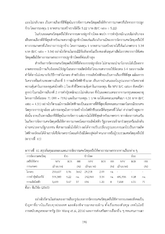 ขDาว โดยการลงทุน 1 บาทสามารถสรDางรายไดDถึง 5.22 บาท (B/C ratio = 5.22)