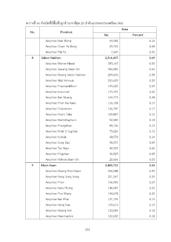 ตารางที่ 66 จังหวัดที่มีพื้นที่ปลูกขDาวมากที่สุด 20 ลำดับแรกของประเทศไทย (ตIอ)