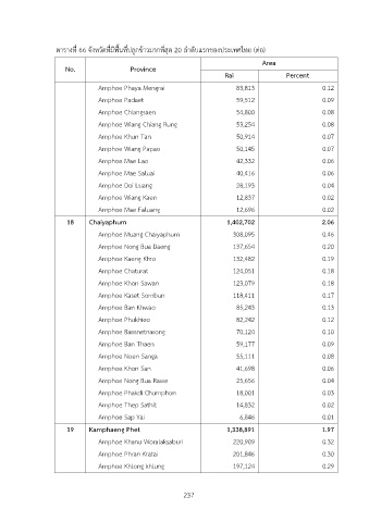 ตารางที่ 66 จังหวัดที่มีพื้นที่ปลูกขDาวมากที่สุด 20 ลำดับแรกของประเทศไทย (ตIอ)