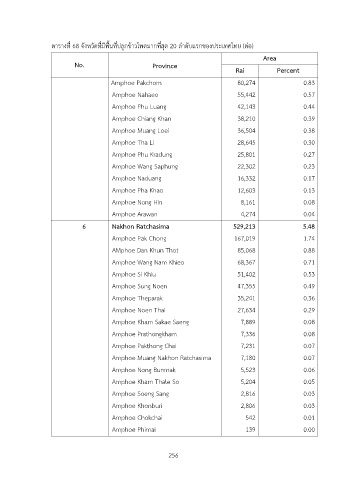 ตารางที่ 68 จังหวัดที่มีพื้นที่ปลูกขDาวโพดมากที่สุด 20 ลำดับแรกของประเทศไทย (ตIอ)