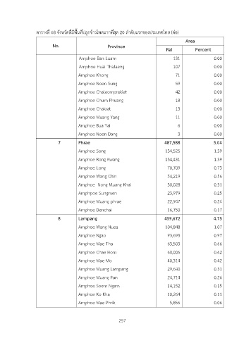 ตารางที่ 68 จังหวัดที่มีพื้นที่ปลูกขDาวโพดมากที่สุด 20 ลำดับแรกของประเทศไทย (ตIอ)
