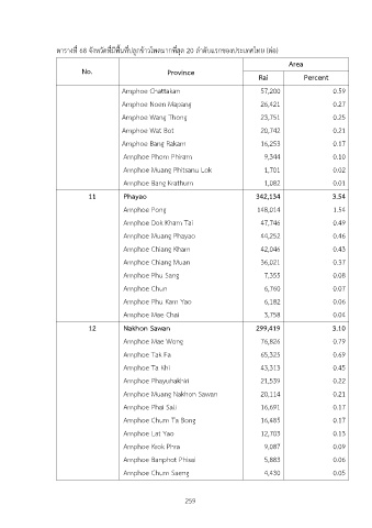 ตารางที่ 68 จังหวัดที่มีพื้นที่ปลูกขDาวโพดมากที่สุด 20 ลำดับแรกของประเทศไทย (ตIอ)