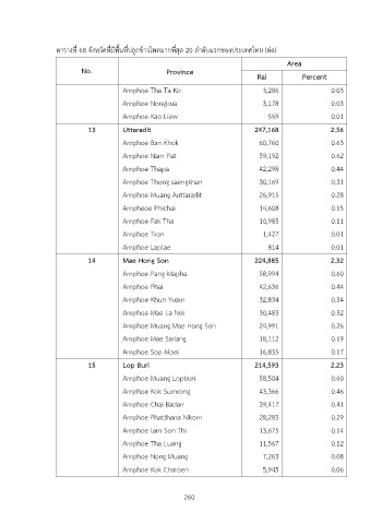 ตารางที่ 68 จังหวัดที่มีพื้นที่ปลูกขDาวโพดมากที่สุด 20 ลำดับแรกของประเทศไทย (ตIอ)