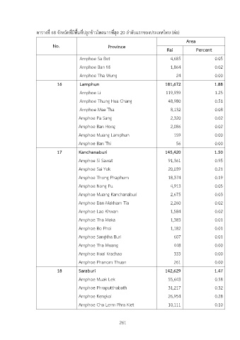 ตารางที่ 68 จังหวัดที่มีพื้นที่ปลูกขDาวโพดมากที่สุด 20 ลำดับแรกของประเทศไทย (ตIอ)