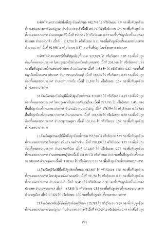 8.จังหวัดนครสวรรค1มีพื้นที่ปลูกอDอยทั้งหมด 942,798 ไรI หรือรDอยละ 4.9 ของพื้นที่ปลูกอDอย