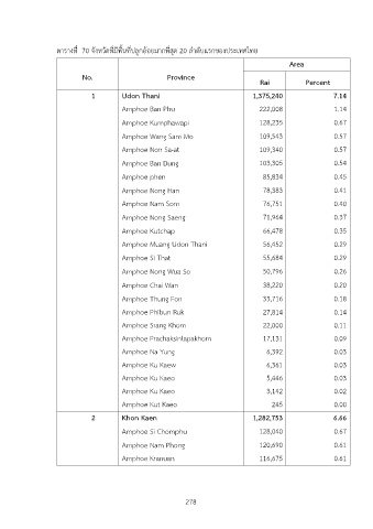 ตารางที่ 70 จังหวัดที่มีพื้นที่ปลูกอDอยมากที่สุด 20 ลำดับแรกของประเทศไทย