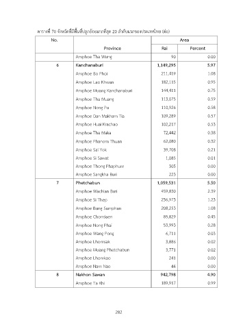 ตารางที่ 70 จังหวัดที่มีพื้นที่ปลูกอDอยมากที่สุด 20 ลำดับแรกของประเทศไทย (ตIอ)