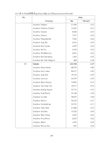 ตารางที่ 70 จังหวัดที่มีพื้นที่ปลูกอDอยมากที่สุด 20 ลำดับแรกของประเทศไทย (ตIอ)