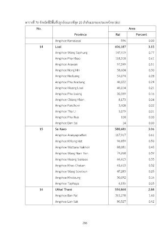 ตารางที่ 70 จังหวัดที่มีพื้นที่ปลูกอDอยมากที่สุด 20 ลำดับแรกของประเทศไทย (ตIอ)