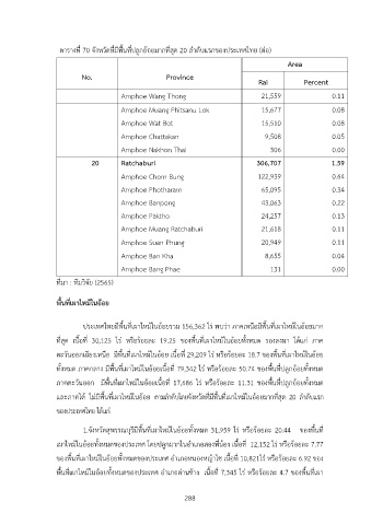 ตารางที่ 70 จังหวัดที่มีพื้นที่ปลูกอDอยมากที่สุด 20 ลำดับแรกของประเทศไทย (ตIอ)