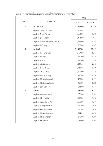 ตารางที่ 71 จังหวัดที่มีพื้นที่เผาไหมDในอDอยมากที่สุด 20 ลำดับแรกของประเทศไทย