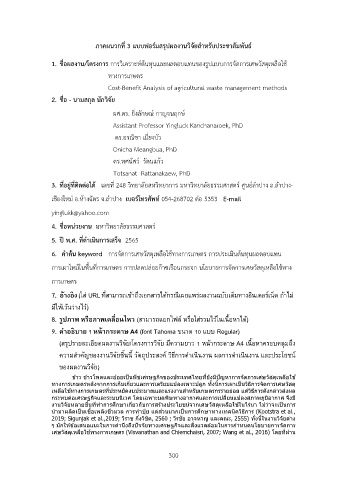 6. คำค4น keyword การจัดการเศษวัสดุเหลือใชDทางการเกษตร การประเมินตDนทุนผลตอบแทน