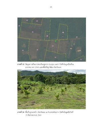 149 ภาพที่ 33 ข้อมูลดาวเทียมรายละเอียดสูงจาก Google earth บันทึกข้อมูลเมื่อเดือน มกราคม พ.ศ. 2565 แสดงพื้นที่ปลูกไม้ผล จังหวัดเลย ภาพที่ 34 พื้นที่ปลูกมะพร้าว จังหวัดเลย ณ ตําแหน่งตัวอย่าง บันทึกข้อมูลเมื่อวันที่ 19 สิงหาคม พ.ศ. 2565