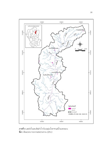 28 ภำพที่ 6 แหล่งน้ าและเส้นล าน้ าบริเวณลุ่มน้ าสาขาแม่น้ ายมตอนบน ที่มำ: ดัดแปลงมาจากกรมชลประทาน (2561)