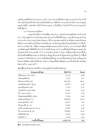 มากที่สุดในลุ่มน้ า ซึ่งมีพื้นที่ 659,792 ไร่ คิดเป็นร้อยละ 49.96 ของพื้นที่ลุ่มน้ าทั้งหมด รองลงมาเป็น