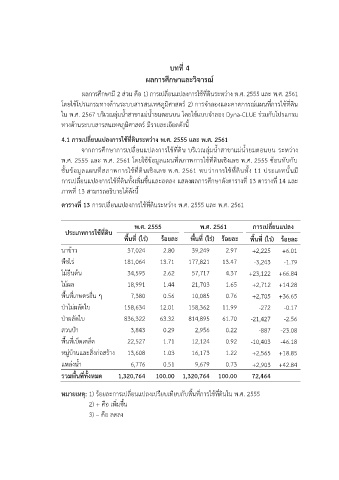 ตำรำงที่ 13 การเปลี่ยนแปลงการใช้ที่ดินระหว่าง พ.ศ. 2555 และ พ.ศ. 2561