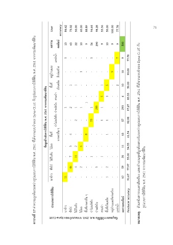 ตำรำงที่ 17 ค่าความถูกต้องระหว่างรูปแบบการใช้ที่ดิน พ.ศ. 2561 ที่ได้จากแบบจ าลอง Dyna-CLUE กับรูปแบบการใช้ที่ดิน พ.ศ. 2561 จากกรมพัฒนาที่ดิน