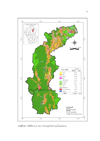 75 73 ภำพที่ 30 การใช้ที่ดิน พ.ศ. 2567 บริเวณลุ่มน้ าสาขาแม่น้ ายมตอนบน