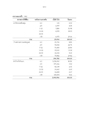 สภาพการใช้ที่ดิน ระดับความลาดชัน เนื้อที่ (ไร่) ร้อยละ