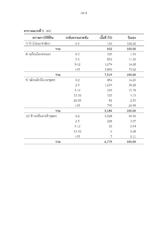สภาพการใช้ที่ดิน ระดับความลาดชัน เนื้อที่ (ไร่) ร้อยละ