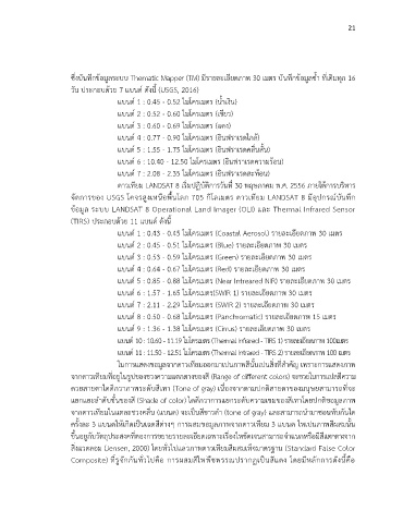วัน ประกอบด้วย 7 แบนด์ ดังนี้ (USGS, 2016)