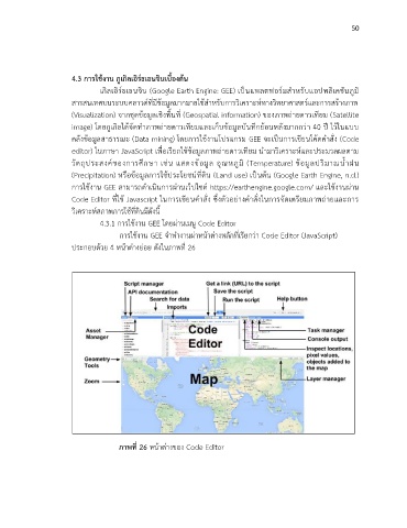 editor) ในภาษา JavaScript เพื่อเรียกใช้ข้อมูลภาพถ่ายดาวเทียม น ามาวิเคราะห์และประมวลผลตาม