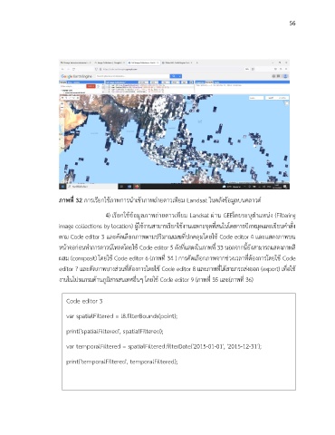 ภาพที่ 32 การเรียกใช้ภาพการน าเข้าภาพถ่ายดาวเทียม Landsat ในคลังข้อมูลบนคลาวด์