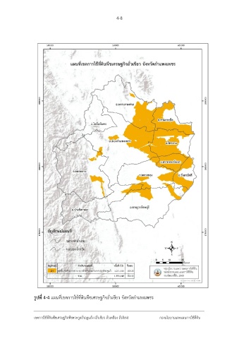 4-8 รูปที่ 4-4 แผนที่เขตการใช้ที่ดินพืชเศรษฐกิจถั่วเขียว จังหวัดก าแพงเพชร เขตการใช้ที่ดินพืชเศรษฐกิจพืชตระกูลถั่วฤดูแล้ง (ถั่วเขียว ถั่วเหลือง ถั่วลิสง) กองนโยบานและแผนการใช้ที่ดิน