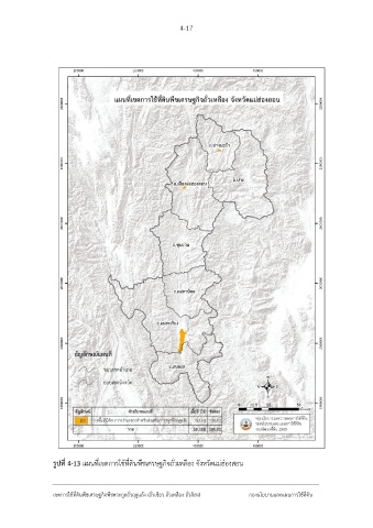 4-17 รูปที่ 4-13 แผนที่เขตการใช้ที่ดินพืชเศรษฐกิจถั่วเหลือง จังหวัดแม่ฮ่องสอน เขตการใช้ที่ดินพืชเศรษฐกิจพืชตระกูลถั่วฤดูแล้ง (ถั่วเขียว ถั่วเหลือง ถั่วลิสง) กองนโยบานและแผนการใช้ที่ดิน