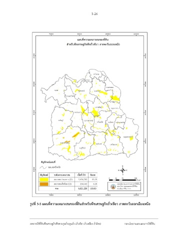 3-26 รูปที่ 3-5 แผนที่ความเหมาะสมของที่ดินส าหรับพืชเศรษฐกิจถั่วเขียว ภาคตะวันออกเฉียงเหนือ เขตการใช้ที่ดินพืชเศรษฐกิจพืชตระกูลถั่วฤดูแล้ง (ถั่วเขียว ถั่วเหลือง ถั่วลิสง) กองนโยบานและแผนการใช้ที่ดิน