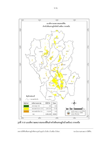 3-31 รูปที่ 3-10 แผนที่ความเหมาะสมของที่ดินส าหรับพืชเศรษฐกิจถั่วเหลือง) ภาคเหนือ เขตการใช้ที่ดินพืชเศรษฐกิจพืชตระกูลถั่วฤดูแล้ง (ถั่วเขียว ถั่วเหลือง ถั่วลิสง) กองนโยบานและแผนการใช้ที่ดิน
