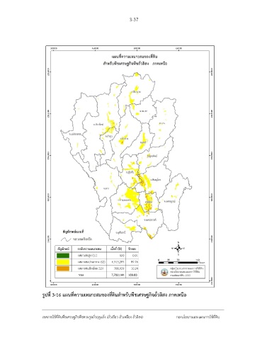 3-37 รูปที่ 3-16 แผนที่ความเหมาะสมของที่ดินส าหรับพืชเศรษฐกิจถั่วลิสง ภาคเหนือ เขตการใช้ที่ดินพืชเศรษฐกิจพืชตระกูลถั่วฤดูแล้ง (ถั่วเขียว ถั่วเหลือง ถั่วลิสง) กองนโยบานและแผนการใช้ที่ดิน