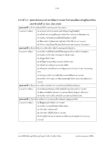ตารางที่ 3-9 : ยุทธศาสตร์และแนวทางการพัฒนาการเกษตร ในช่วงแผนพัฒนาเศรษฐกิจและสังคม