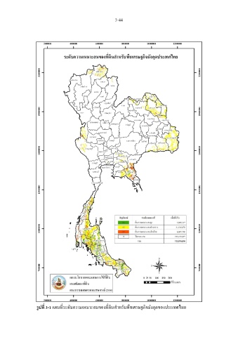3-44 รูปที่ 3-1 แผนที่ระดับความเหมาะสมของที่ดินส าหรับพืชเศรษฐกิจมังคุดของประเทศไทย