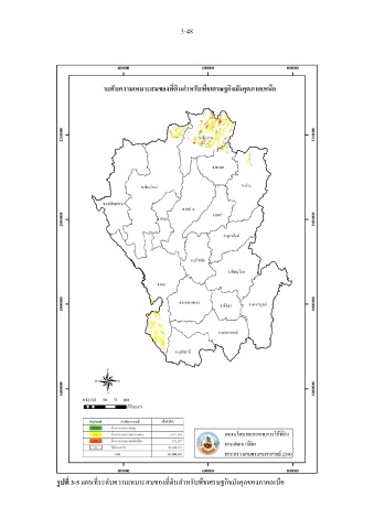 3-48 รูปที่ 3-5 แผนที่ระดับความเหมาะสมของที่ดินส าหรับพืชเศรษฐกิจมังคุดของภาคเหนือ